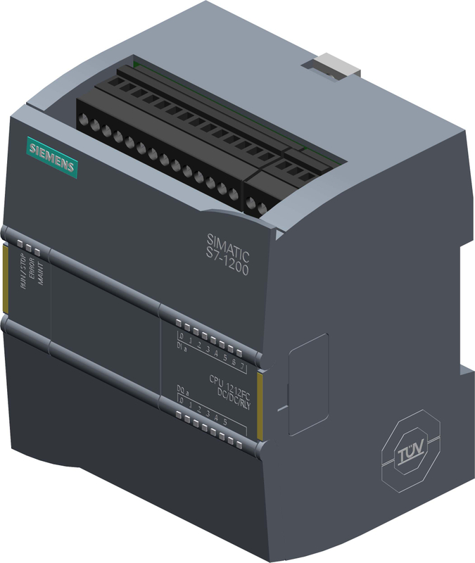 SIMATIC S7-1200, CPU 1212FC, compact CPU, DC/DC/relay, onboard I/O: 8 DI 24 V DC; 6 DO relay 2 A; 2 AI 0-10 V DC, Power supply: DC 20.4-28.8V DC, Program/data memory 100 KB